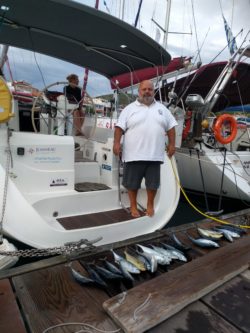 Happy fisheman after Fishing in Halkidiki with CharterAyachtHalkidiki fish are famously very tasty. My commercial fisherman friends tell me that the combination of pretty deep coastal waters, pretty interesting underwater formations making deep reefs, and the proximity to the mountain as a source of sweetwater from rains, make the crystal clear waters a perfect place for fattening naturally the fish. So even the humble sardines they fish in Toroneos gulf, between Kassandra and Sithonia peninsular, are tastier than the sardines a few miles offshore or in Thermaikos Gulf.